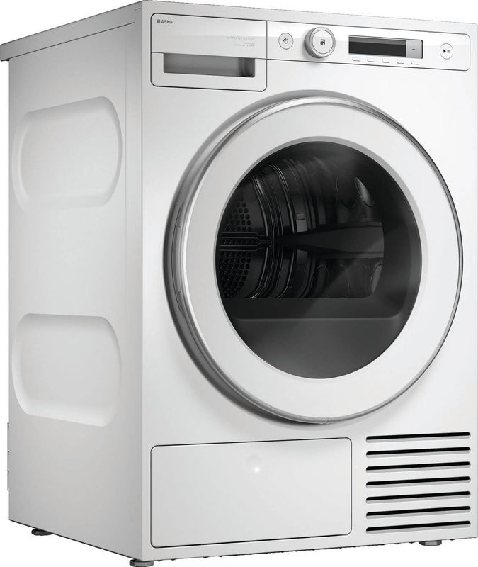 ASKO T309HCW ist ein Trockner, der in Schweden entwickelt und 20 Jahre lang getestet wurde. Es hat eine Kapazität von 9 kg und 12 verschiedene Programme für eine einfache und effiziente Trocknung. Dank des einfach zu bedienenden Fusselfilters, dem One Motion™ Lint Filter, ist die tägliche Pflege des Trockners reibungslos. Die Butterfly Truging-Technologie™ verteilt die Kleidung und sorgt für ein gleichmässiges und sanftes Trocknen.