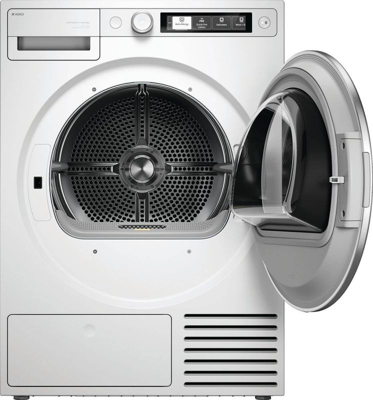 Der ASKO T509HRW ist ein Trockner, der in Schweden entwickelt und für 20 Jahre im Einsatz getestet wurde. Es hat eine Kapazität von 9 kg und 18 verschiedene Programme für ein einfaches und effizientes Trocknen. Dank des einfach zu bedienenden Fusselfilters, dem One Motion™ Lint Filter, ist die tägliche Pflege des Trockners reibungslos. Die Butterfly Drying-Technologie™ verteilt die Kleidung und sorgt für ein gleichmässiges und sanftes Trocknen.