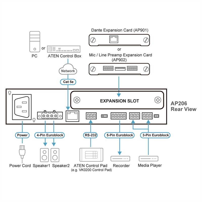 ATEN AP206 2 x 60W Leistungsverstärker mit DSP