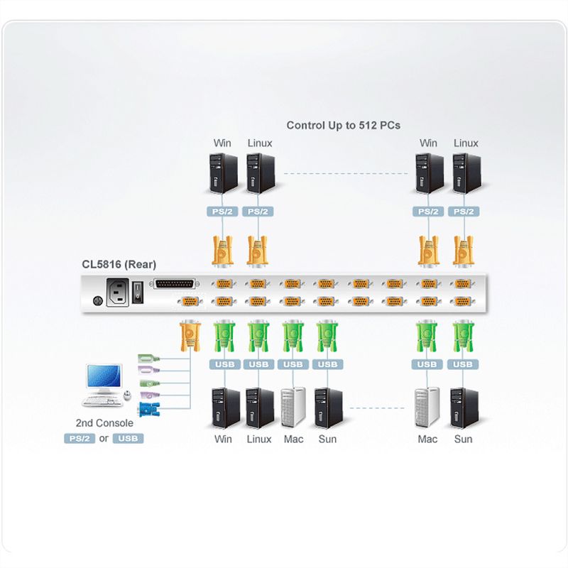 ATEN CL5816N 48cm-LCD KVM Switch USB-PS/2,VGA, 16 Port, DE-Layout