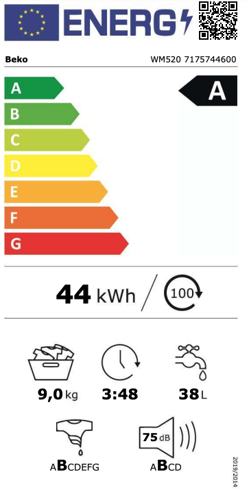 | Stromverbrauch pro 100 Waschgänge(kWh) | 44 |