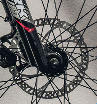 Die GT MARK 360 Federgabel absorbiert Unebenheiten zuverlässig, was besonders auf Waldwegen oder Schotterpassagen für spürbare Entlastung sorgt. Ergänzt wird dies durch die JAK NUTT hydraulischen Scheibenbremsen, die auch bei hoher Geschwindigkeit oder abrupten Situationen präzise und sicher verzögern. Das Shimano Altus 3×7-Gang-Schaltwerk ermöglicht eine feine und flexible Anpassung an jede Fahrsituation. Der Fahrer kann auf wechselnde Steigungen oder unterschiedliche Untergründe mühelos reagieren.
