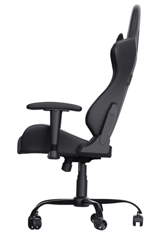 In diesem Trust GXT 708 Resto Gaming-Stuhl Schwarz spielst du deine Spiele bequem und mit Stil. Die Rücken- und Armlehnen sowie der Sitz lassen sich in der Höhe verstellen, sodass du immer gut sitzt. So spielst du auch in langen Gaming-Sessions immer mit viel Komfort. Die Rückenlehne des Stuhls lässt sich für eine gute Haltung um bis zu 180 Grad neigen. Die mitgelieferten Nacken- und Lendenkissen nutzt du als zusätzliche Stützen. Wenn du die Nackenkissen nicht brauchst, entfernst du sie einfach. Dieser Stuhl eignet sich für Gamer mit einer maximalen Körpergröße von 195 cm und einem maximalen Körpergewicht von 150 kg. Der Stuhlbezug ist aus Kunstleder, was sich leicht reinigen lässt und zudem langlebiger als Stoff ist.
