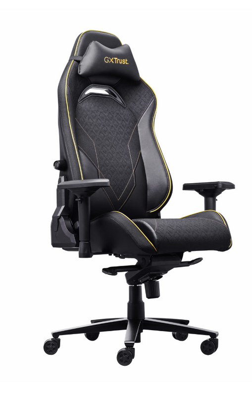 Mit dem Trust GXT 721 Ruya Pro Gaming-Stuhl Schwarz spielst du deine Lieblingsspiele mit viel Komfort. Das mitgelieferte Nackenkissen und die integrierte Rückenlehne bieten zusätzlichen Halt. Wenn du das Nackenkissen nicht brauchst, nimmst du es einfach ab, wenn du es nicht brauchst. Du verstellst die Rücken- und Armlehnen sowie den Sitz in der Höhe, sodass du immer gut sitzt. Die Armlehnen verstellst du zusätzlich auch in alle Richtungen. So sitzt du in langen Gaming-Sessions immer mit viel Komfort. Du neigst die Rückenlehne des Stuhls für eine gute Haltung. Dieser Stuhl eignet sich für Gamer mit einer maximalen Körpergröße von 195 cm und einem maximalen Körpergewicht von 150 kg. Der Stoffbezug dieses Stuhls ist atmungsaktiv und wird auch während einer langen Gaming-Session nicht zu warm.