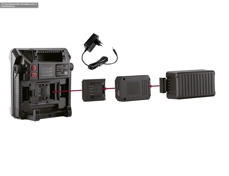 Kraftwerk LED Arbeitslampe 5000, wechselbarer Akku, 5 Farbtemperaturen
