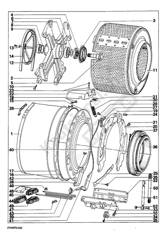 Ersatzteil zu Miele W 697 LAUGENBEHAELTER,TROMMEL,LAGERUNG,HEIZKOERPER (Teile Nr. 50+52 auf der Abbildung)