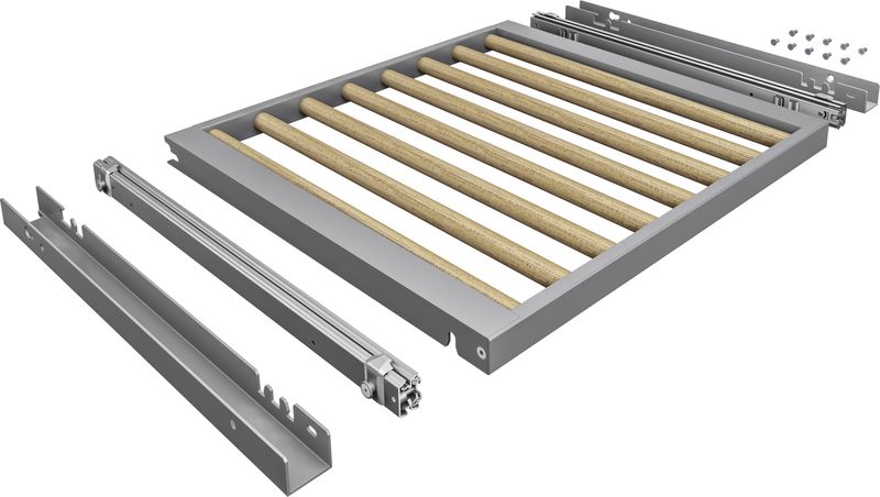 Voll ausziehbare, verkleidete Flaschenablage aus Eichenholz und massiven Aluminium in Anthrazit