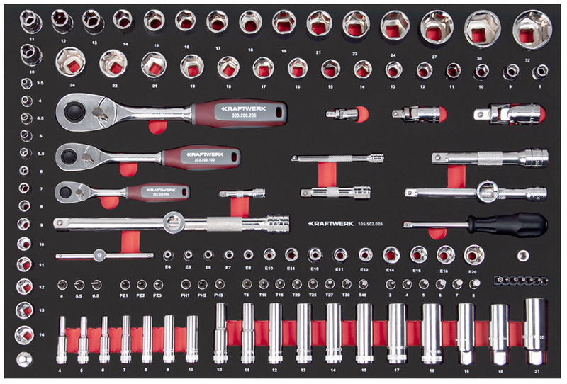 278 hochwertige Werkzeuge in 11 EVA Werkzeugeinlagen