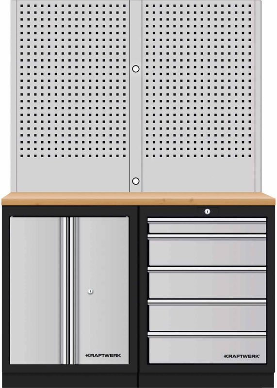 Kraftwerk MOBILIO 2er Kompakt-Kombi mit Lochwand, Buche Multiplex Mobilio