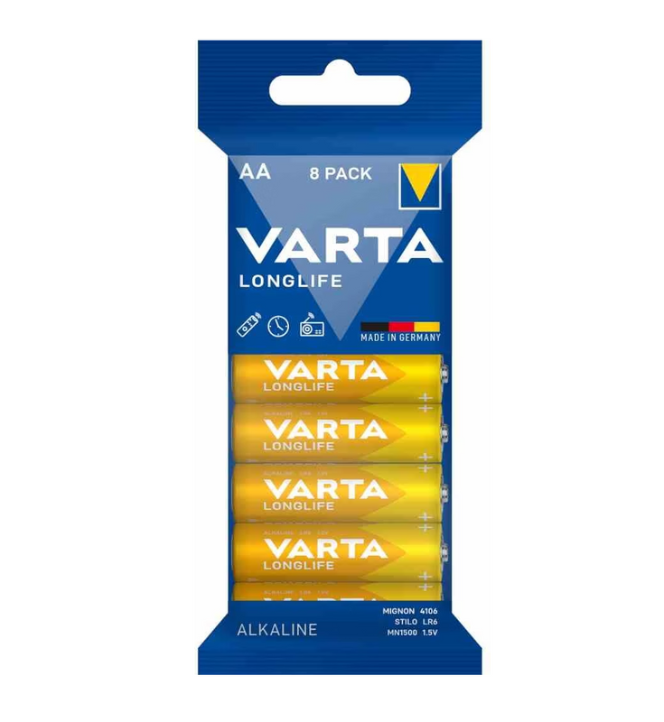 Die VARTA Longlife AA Alkaline Batterien im 8er-Pack sind die ideale Wahl für alle, die Wert auf Qualität, Langlebigkeit und Effizienz legen. Sie bieten die perfekte Kombination aus Leistung, Haltbarkeit und Sicherheit – für eine Energiequelle, auf die man sich verlassen kann.