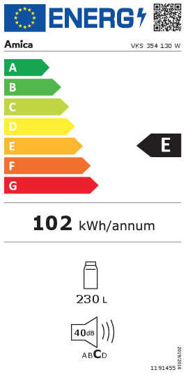 Mit seiner Energieeffizienzklasse E und einem jährlichen Verbrauch von lediglich 102 kWh verbindet der AMICA VKS 354 130 W moderne Leistung mit verantwortungsbewusstem Energieeinsatz. Das macht ihn zu einer soliden Wahl für alle, die langfristige Zuverlässigkeit und Effizienz schätzen.