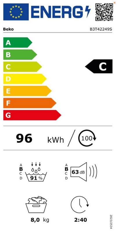 • Energieeffizienzklasse/Fassungsvermögen: C / 8 kg
