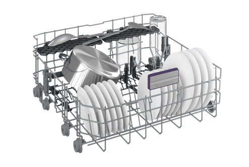Besonders innovativ ist die CornerIntense-Technologie – ein neuartiger Sprüharm, der das Wasser gezielt in jede Ecke des Spülraums leitet. So wird selbst hartnäckiger Schmutz vollständig entfernt, ohne dass man nachspülen muss. Ergänzt wird dies durch die DeepWash-Zone, die speziell für stark verschmutztes Kochgeschirr entwickelt wurde. Große Töpfe, Pfannen oder Backbleche werden dort gründlich gereinigt – ganz ohne zusätzlichen Aufwand.
