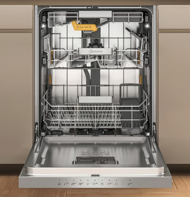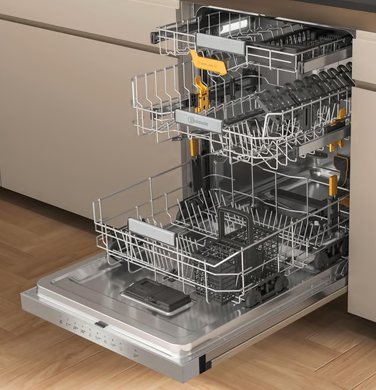 Das Herzstück des Geräts ist die innovative PowerClean Pro-Technologie. Spezielle Hochdruckdüsen im hinteren Bereich des Innenraums entfernen selbst hartnäckigste Speisereste mühelos. So werden auch stark verschmutzte Pfannen und Auflaufformen gründlich sauber – ganz ohne Vorspülen. Ergänzt wird dies durch das intelligente NaturalDry-System, das am Ende des Spülvorgangs die Tür automatisch öffnet. So kann die Luft natürlich zirkulieren, wodurch das Geschirr schneller und energieeffizienter trocknet – für strahlende Sauberkeit und makellosen Glanz.