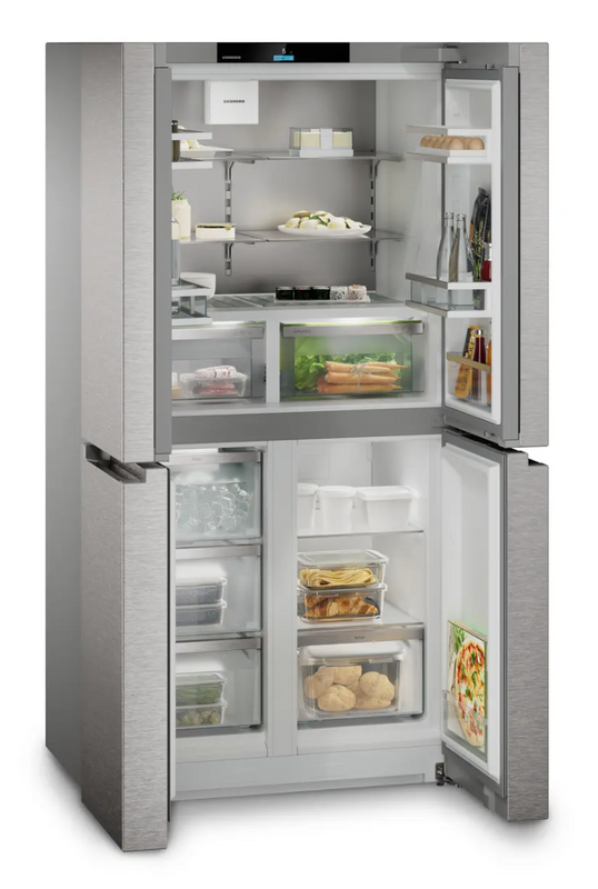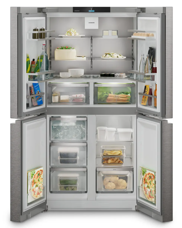 Die vier grosszügigen French-Door-Türen ermöglichen eine komfortable Handhabung und einen besonders übersichtlichen Zugriff auf alle Lebensmittel. Die Türen öffnen und schließen dabei besonders leicht und sicher.