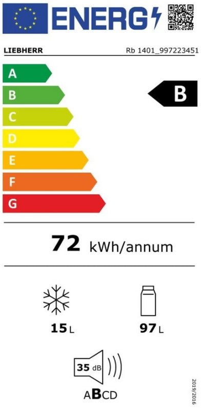Mit der Energieeffizienzklasse B und einem Verbrauch von nur 72 kWh pro Jahr arbeitet der RB 1401 äußerst sparsam und umweltbewusst. Die integrierte LED-Beleuchtung sorgt für eine helle, gleichmäßige Ausleuchtung des Innenraums, während die SmartFrost-Technologie das Vereisen des Gefrierfachs deutlich reduziert und das Abtauen erleichtert.