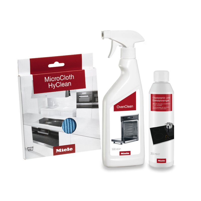 Entdecken Sie das MIELE CleanKitchen Set, die perfekte Kombination für makellose Küchenpflege. OvenClean entfernt mühelos Rückstände und Gerüche aus dem Backofen, während der Glaskeramikreiniger Fett, Eingebranntes und Wasserflecken zuverlässig beseitigt. Das antibakterielle Microfasertuch sorgt dauerhaft für duftende Frische bei jeder Anwendung. Dieses Set bietet nicht nur herausragende Pflege, sondern garantiert auch viele Jahre zuverlässige Ergebnisse – jetzt zum Sonderpreis im Aktionszeitraum. Vertrauen Sie auf Miele für strahlende Sauberkeit und langanhaltende Qualität in der Küche.