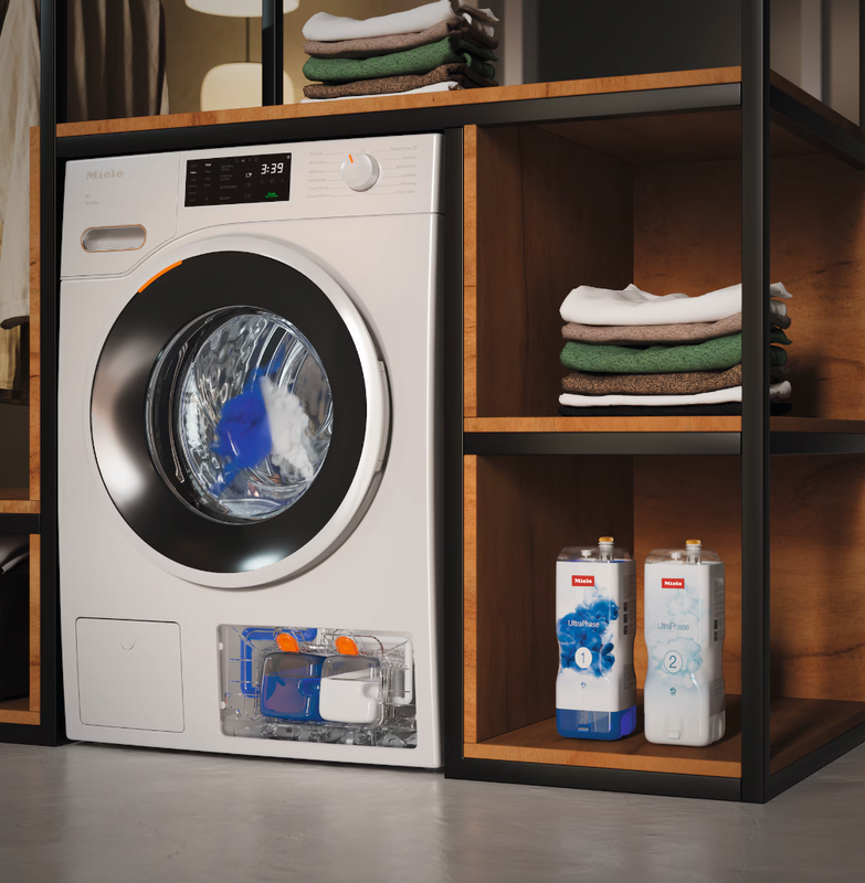 Die Miele UltraPhase-Technologie sorgt für leuchtende Farben und strahlend weiße Wäsche – mit einer automatischen Dosierung durch TwinDos®. Dank der präzisen Zugabe von UltraPhase 1 und 2 wird Waschmittel optimal genutzt, was bis zu 30 % Einsparung ermöglicht.*