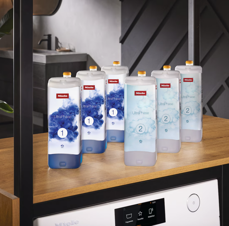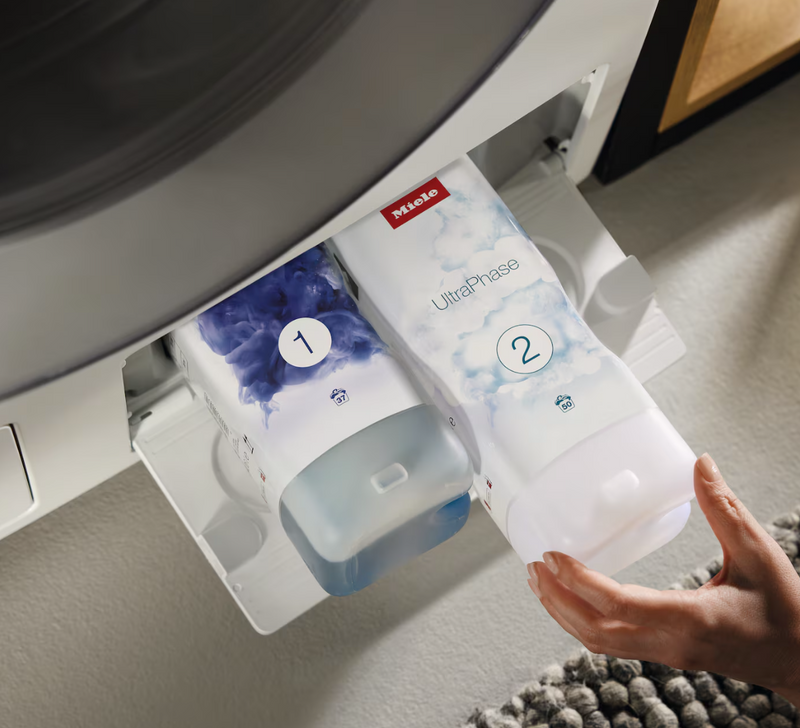 Das Set aus 3 UltraPhase 1 und 3 UltraPhase 2 Flaschen wurde speziell für Miele W1 Waschmaschinen und Waschtrockner mit TwinDos entwickelt. Jede Waschladung wird präzise dosiert – für Ergebnisse, die Sie sehen und fühlen können.