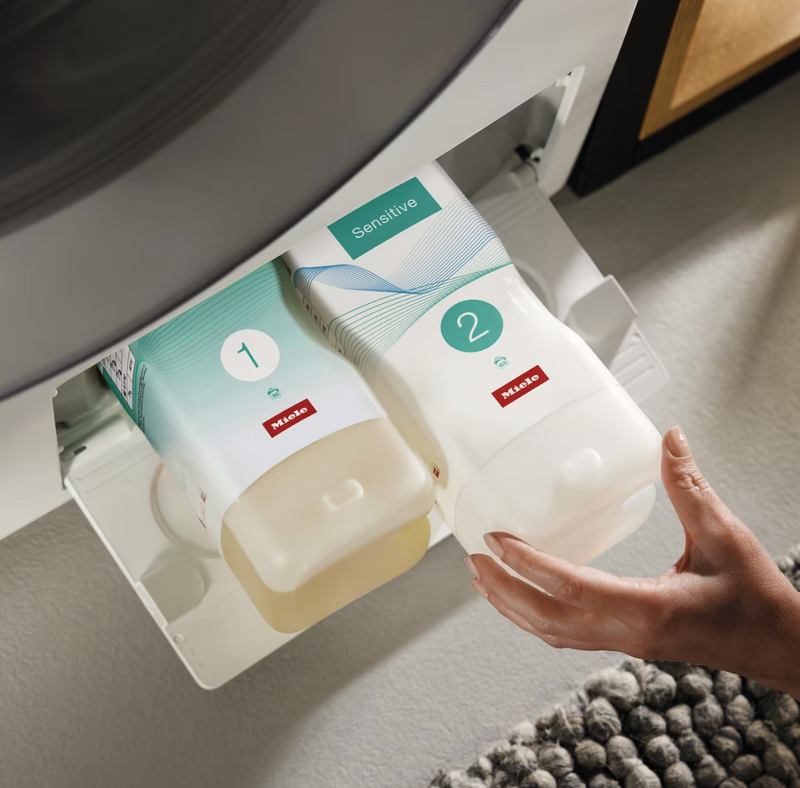 Speziell entwickelt für Miele W1 Waschmaschinen und Waschtrockner mit TwinDos® vereint dieses Set Hautfreundlichkeit, Nachhaltigkeit und erstklassige Sauberkeit – für ein reines Gefühl bei jeder Wäsche.