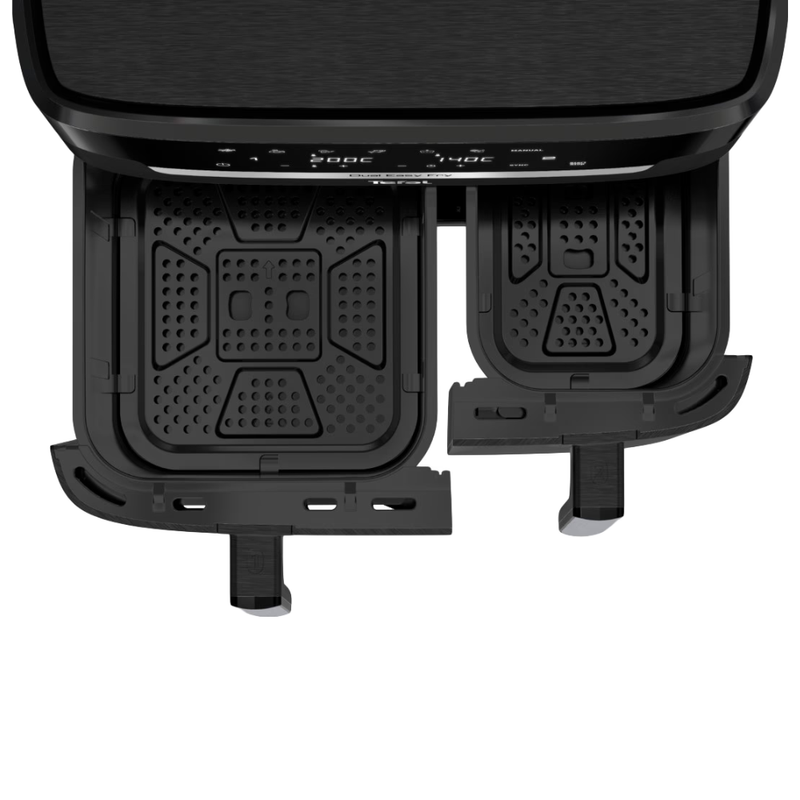 Das Herzstück dieses Airfryers sind die zwei getrennten Garzonen. Zwei Schubladen ermöglichen die parallele Zubereitung unterschiedlicher Speisen mit jeweils eigener Temperatur- und Zeiteinstellung. Knusprige Pommes in der einen Zone und aromatisches Gemüse oder saftiges Fleisch in der anderen – alles entsteht gleichzeitig und dennoch optimal abgestimmt. Unterschiedliche Zutaten behalten ihre ideale Garumgebung und ihr eigenes Geschmacksprofil.