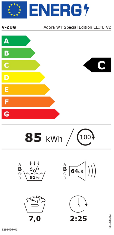 Mit einer Energieeffizienzklasse von A+++ ist der Wärmepumpentrockner Adora WT Special Edition ELITE V2 besonders sparsam im Verbrauch. Durch die Wärmepumpentechnologie wird die Luft effizient erwärmt und wieder abgekühlt, um die Feuchtigkeit aus der Wäsche zu ziehen. Dadurch wird nicht nur Energie gespart, sondern auch die Lebensdauer Ihrer Kleidung verlängert.