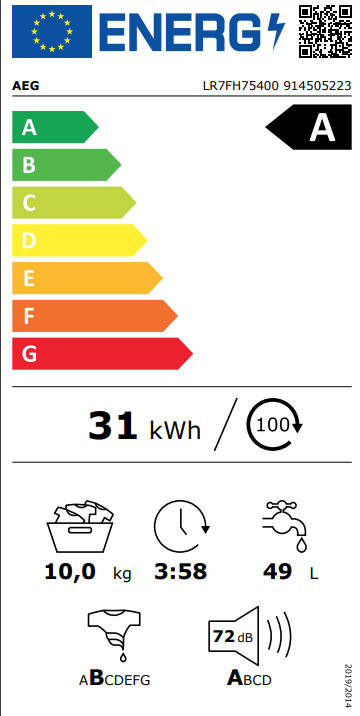 40% effizienter als der Grenzwert der Energieeffizienzklasse A nach der Verordnung (EU) Nr. 2019/2014