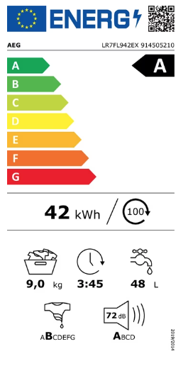 ✓ 15% effizienter als der Grenzwert der Energieeffizienzklasse A nach der Verordnung (EU) Nr. 2019/2014