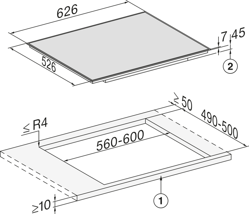 ✓ In 626 mm Breite mit Edelstahlrahmen für aufliegenden Einbau