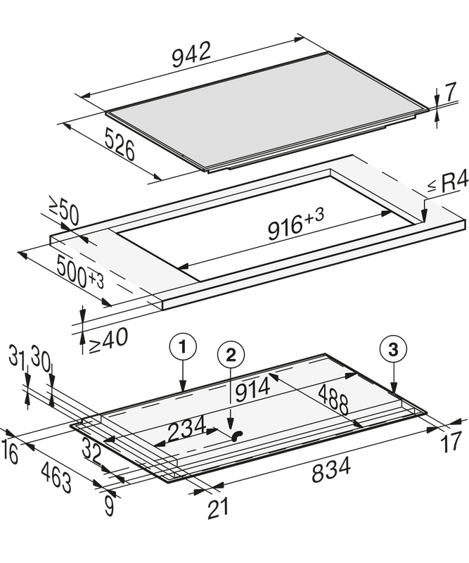 ✓ In 942 mm Breite mit Edelstahlrahmen für aufliegenden Einbau
