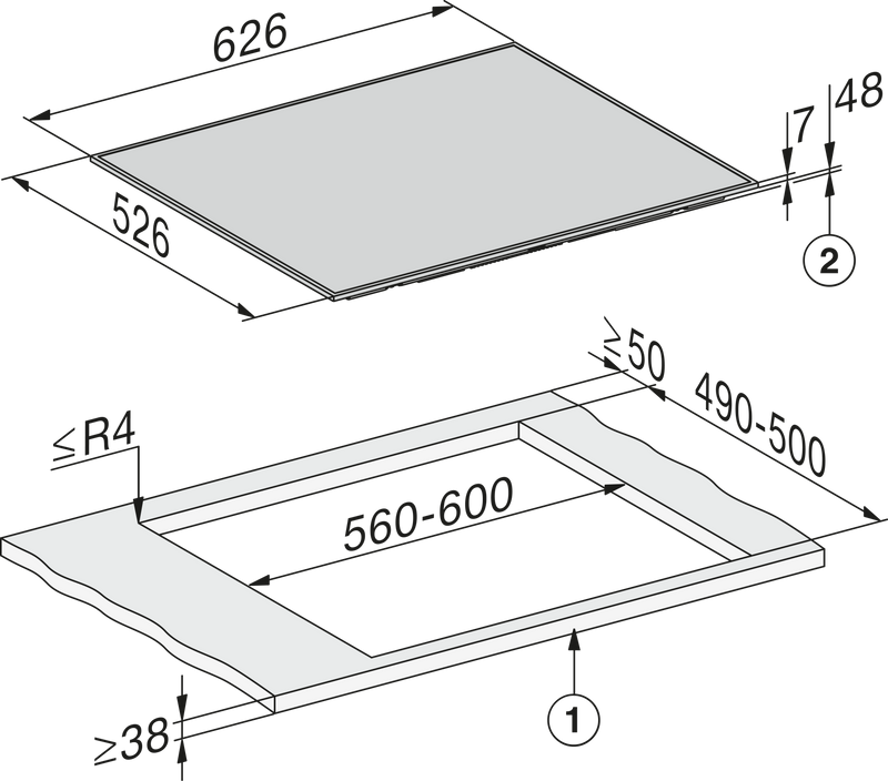 ✓ In 626 mm Breite mit Edelstahlrahmen für aufliegenden Einbau