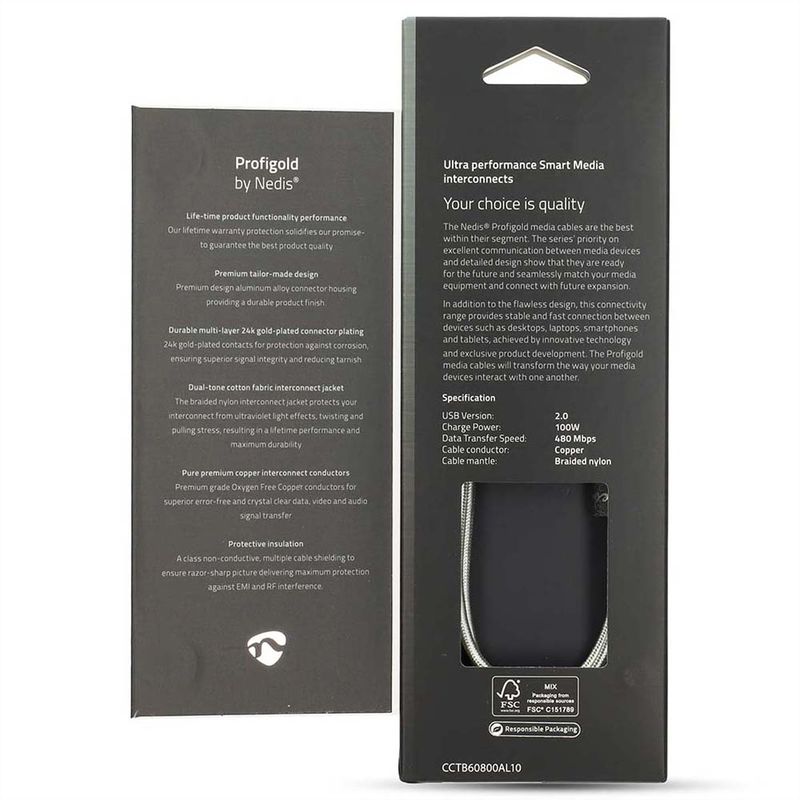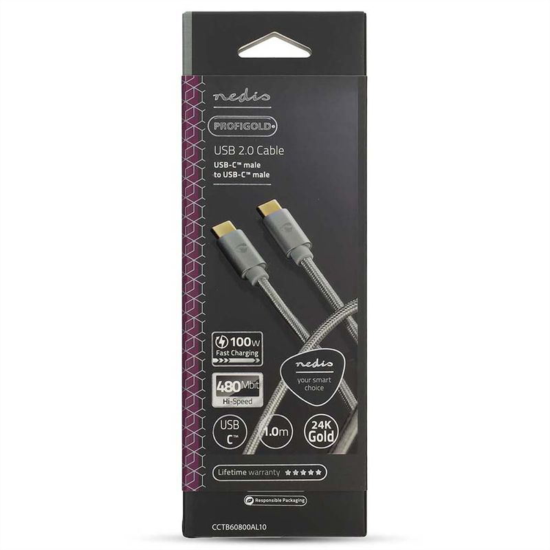 Nedis USB 2.0 Kabel, Typ C-C, ST/ST, 100W, silber, 1m