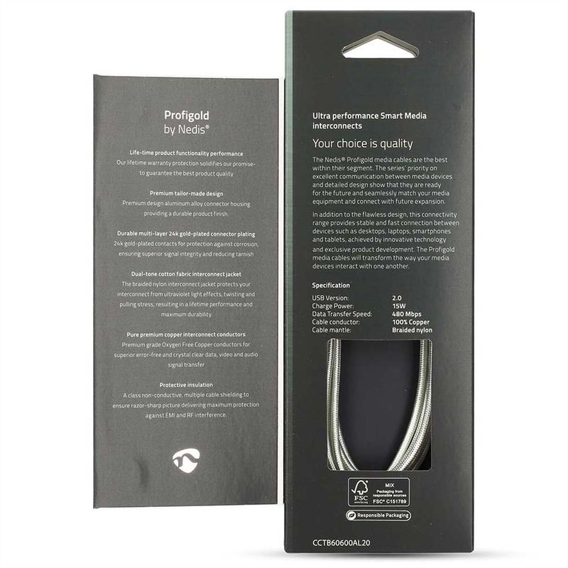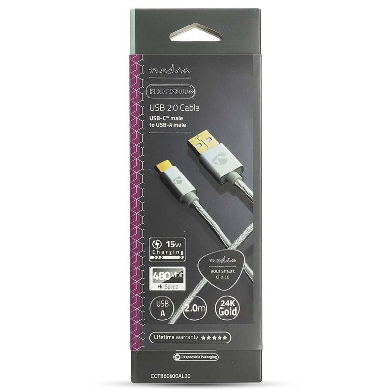 Nedis USB 2.0 Kabel, Typ C - Typ A, ST/ST, 15W, silber, 2m