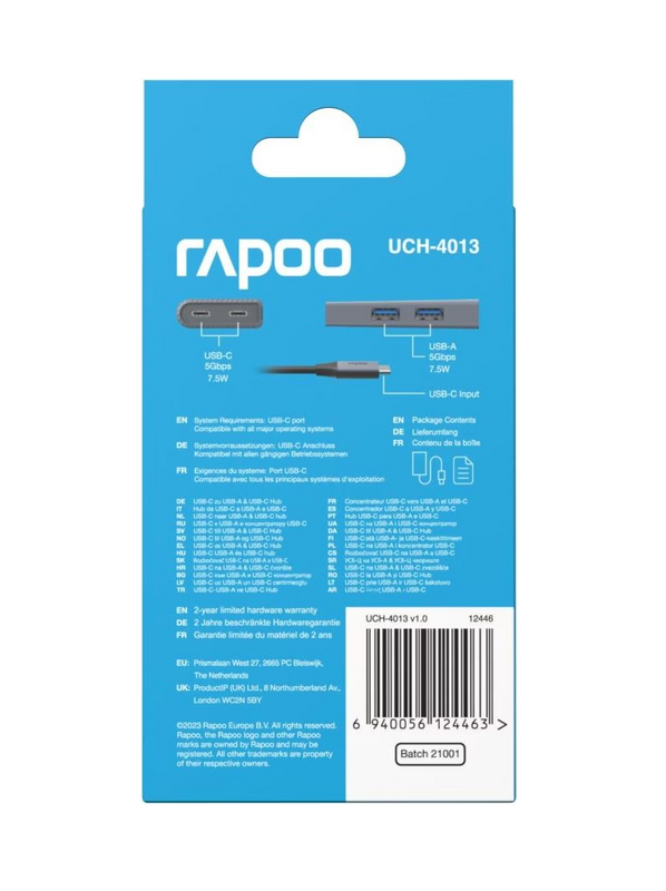 Gefertigt aus hochwertigem Material und in elegantem Grau gehalten, überzeugt der Rapoo UCH-4013 durch durchdachtes Design, hohe Leistungsfähigkeit und Zuverlässigkeit – für eine nahtlose Verbindung in jeder Arbeits- oder Entertainment-Umgebung.
