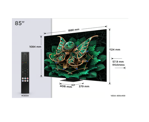 Der TCL 85MQLED85K steht für leistungsstarke Bildtechnik, hohe Bewegungsdarstellung, beeindruckende Größe und fortschrittliche Audiofunktionen. Dieses Gesamtpaket macht das Gerät zu einer ausgezeichneten Wahl für alle, die ein besonders grosses und hochwertiges Fernseherlebnis suchen.