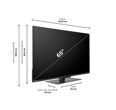 Mit dem TOSHIBA 65UV6F68DA wird Fernsehen zu einem Erlebnis, das begeistert. Der großzügige 65-Zoll-Bildschirm (164 cm Diagonale) mit modernster Direct-LED-Technologie bietet brillante Helligkeit, gleichmäßige Ausleuchtung und beeindruckenden Kontrast – für Bilder, die lebendig wirken und jedes Detail sichtbar machen.