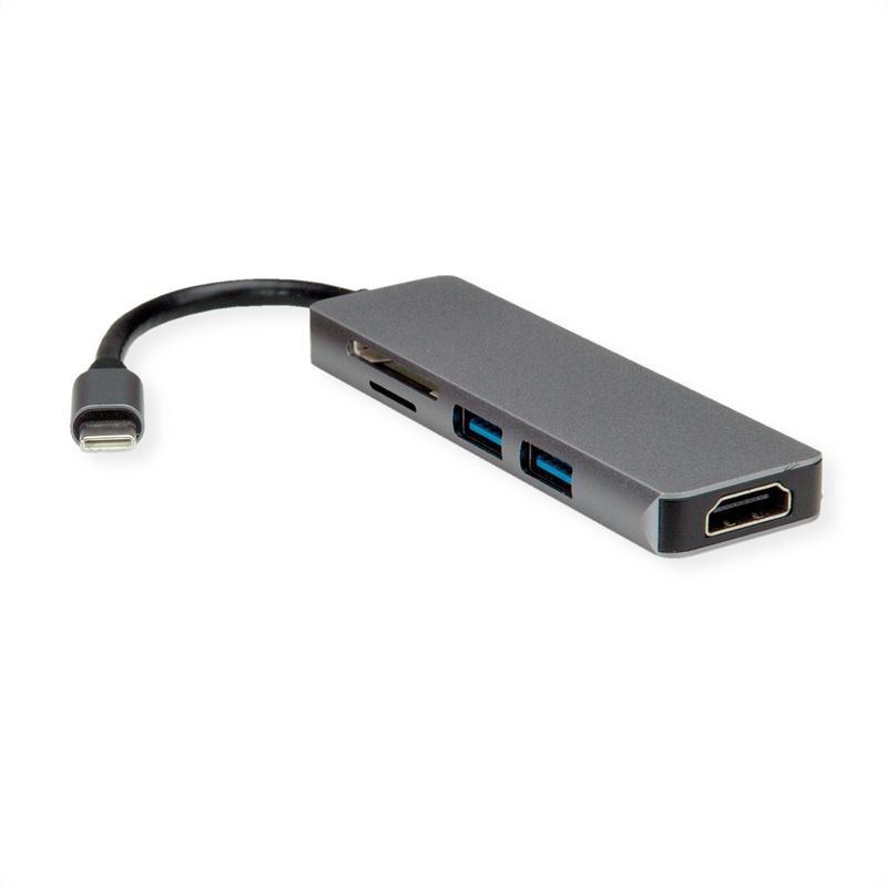 ROLINE Dockingstation USB Typ C, 4K HDMI, 2x USB3.2 Gen1 (Typ A), SD/MicroSD