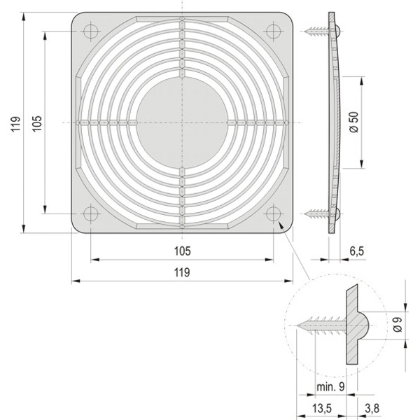 SCHROFF Schutzgitter, Kunststoff, einclipsbar - LUEFTERGITTER EINCLIPSBAR