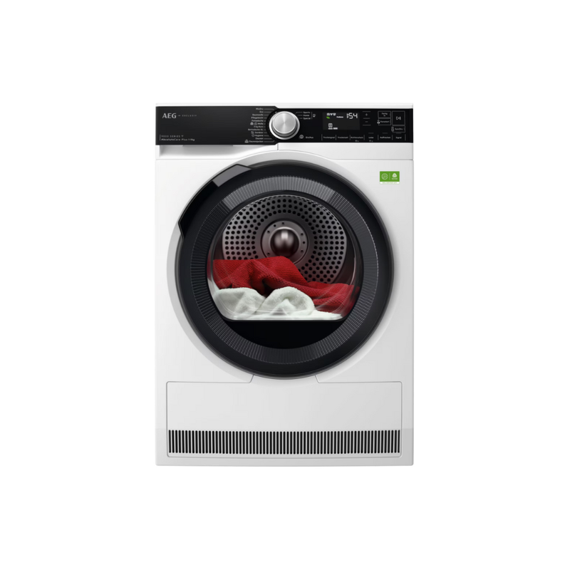 Der AEG WiFi Wärmepumpentrockner TR9W80799 aus der Serie 9000 mit AbsoluteCare®Plus ergänzt das Set auf hohem technischem Niveau. Die 3D-Scan-Technologie misst die Feuchtigkeit nicht nur an der Oberfläche, sondern auch im Inneren der Textilien. In Kombination mit FiberPro werden Temperatur und Trommelbewegung präzise angepasst, um gleichmäßige und materialgerechte Trockenergebnisse zu erzielen. Mit 9,0 kg Fassungsvermögen, Mengenautomatik und einem energiesparenden Betrieb in Energieeffizienzklasse B ist der Trockner auf Effizienz und Schonung ausgelegt. Knitterschutz, Kindersicherung und Trommelbeleuchtung runden den Bedienkomfort ab.