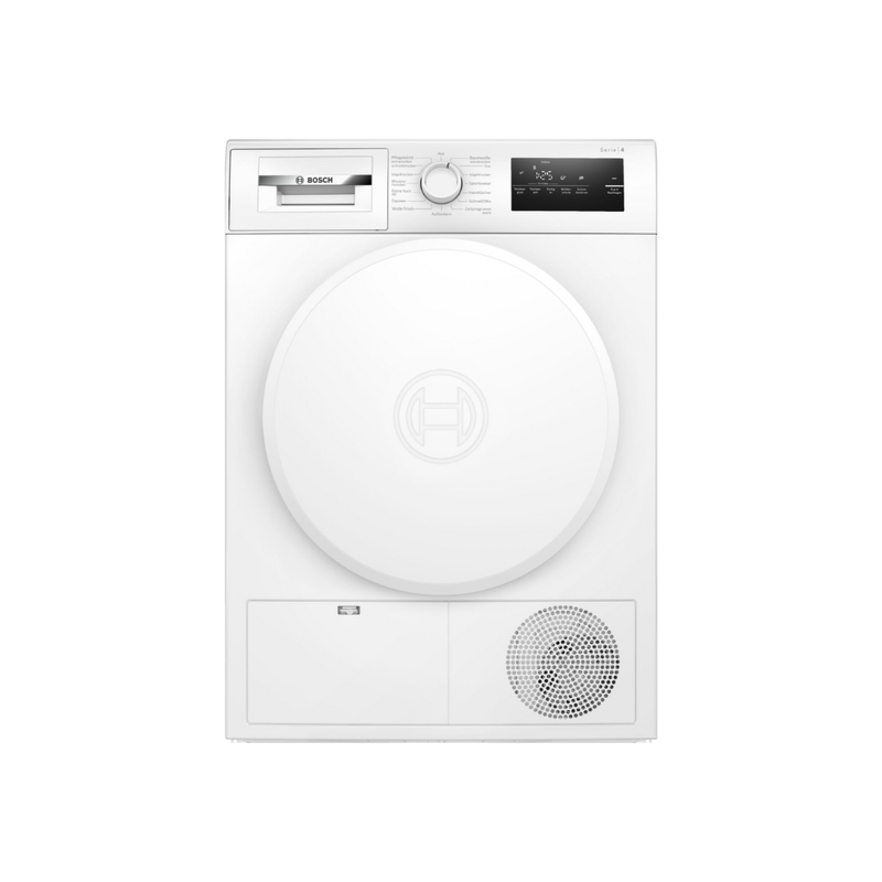 Der BOSCH Wärmepumpentrockner WTH83004, Serie 4 ergänzt das Set optimal. Mit 8 kg Fassungsvermögen ist er auf den Waschgang abgestimmt und trocknet Textilien zuverlässig und schonend. Durch die Wärmepumpentechnologie arbeitet der Trockner besonders energieeffizient, auch wenn die Energieeffizienzklasse E zeigt, dass der Verbrauch bei häufigem Einsatz beachtet werden sollte. Sensorgesteuerte Trocknungsprogramme verhindern Überhitzung und schützen empfindliche Stoffe. Funktionen wie Knitterschutz erleichtern das Handling, sodass die Wäsche nach dem Trocknen sofort einsatzbereit ist.