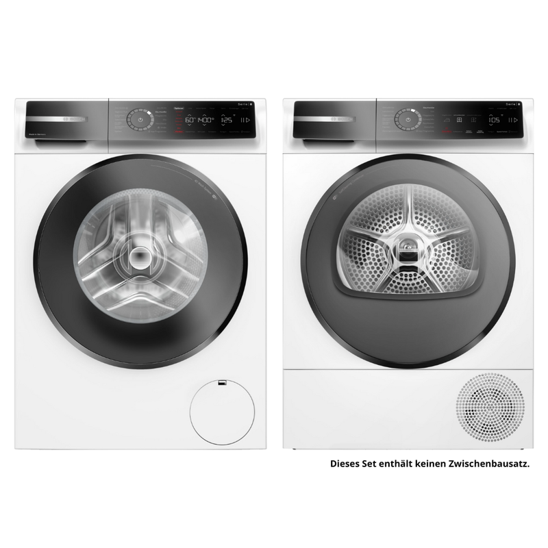 Besonders überzeugend an diesem Wasch-Set ist die Kombination aus Komfort, Präzision und Langlebigkeit. Die Geräte arbeiten ruhig, zuverlässig und sind auf eine lange Lebensdauer ausgelegt. Klare Bedienkonzepte, übersichtliche Anzeigen und intelligent abgestimmte Programme sorgen dafür, dass jeder Wasch- und Trockenvorgang planbar und stressfrei abläuft. Dieses Set passt sich dem Alltag an, nicht umgekehrt.