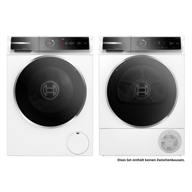 Das klare, hochwertige Design der Serie 8 unterstreicht den Anspruch an Qualität und fügt sich harmonisch in moderne Wohn- und Hauswirtschaftsräume ein. Bosch steht seit Jahrzehnten für Präzision, Zuverlässigkeit und innovative Technik. Dieses Wasch-Set verkörpert genau diese Werte und bietet Lösungen, die den Alltag spürbar erleichtern.