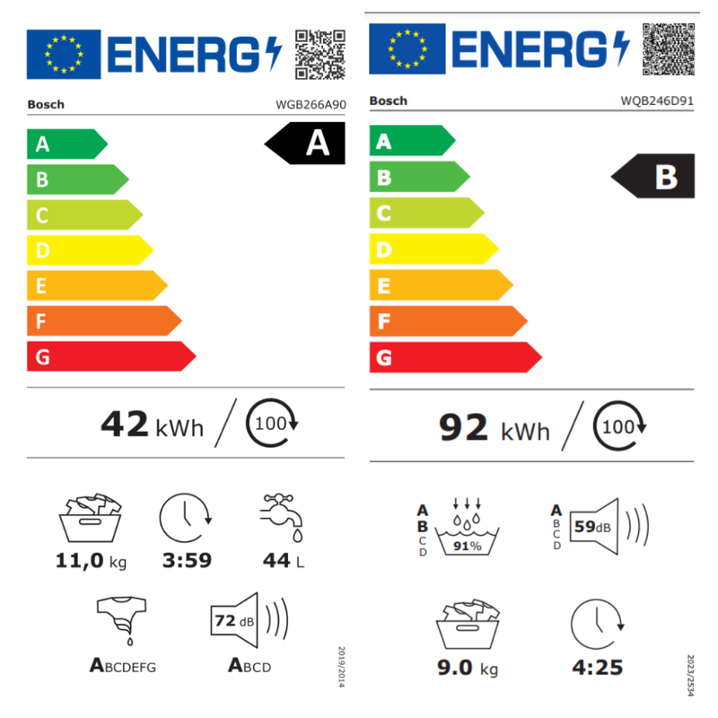 Energieverbrauch: ca. 92 kWh / 100 Zyklen (Eco)