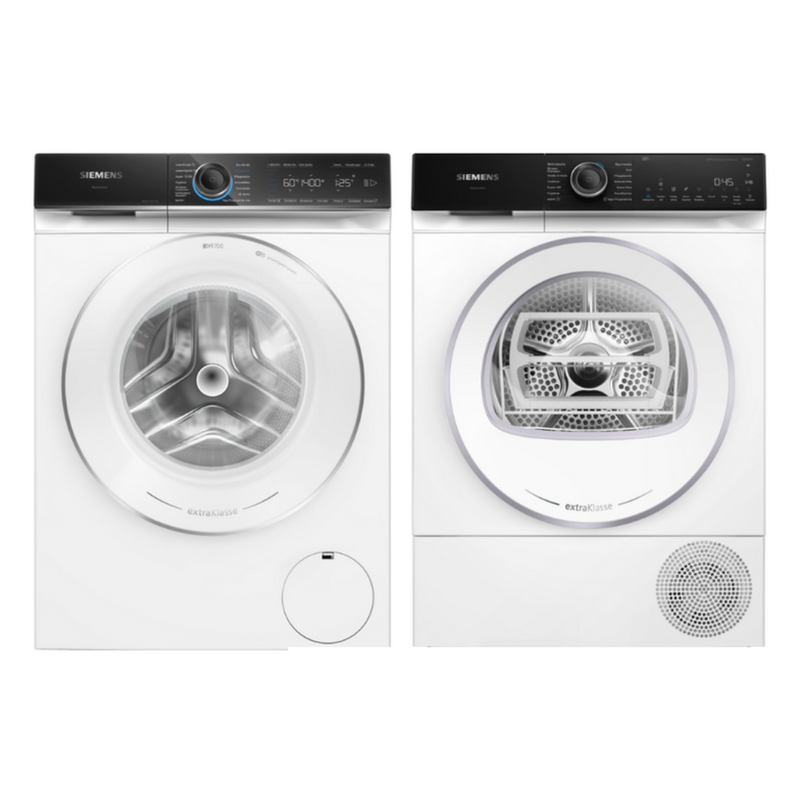 Ergänzt wird das Set durch den Siemens WQ45H2B90 iQ500 Wärmepumpentrockner mit einer Kapazität von 9 kg. Die Wärmepumpentechnologie ermöglicht ein besonders schonendes Trocknen bei niedrigen Temperaturen. Dadurch behalten Textilien länger ihre Form, Farbe und Struktur. Gleichzeitig sorgt diese Technik für einen effizienten Energieeinsatz, der den regelmässigen Betrieb planbar und wirtschaftlich macht. Die Wäsche wird gleichmäßig getrocknet und fühlt sich angenehm an, ohne unnötige Hitzeeinwirkung.