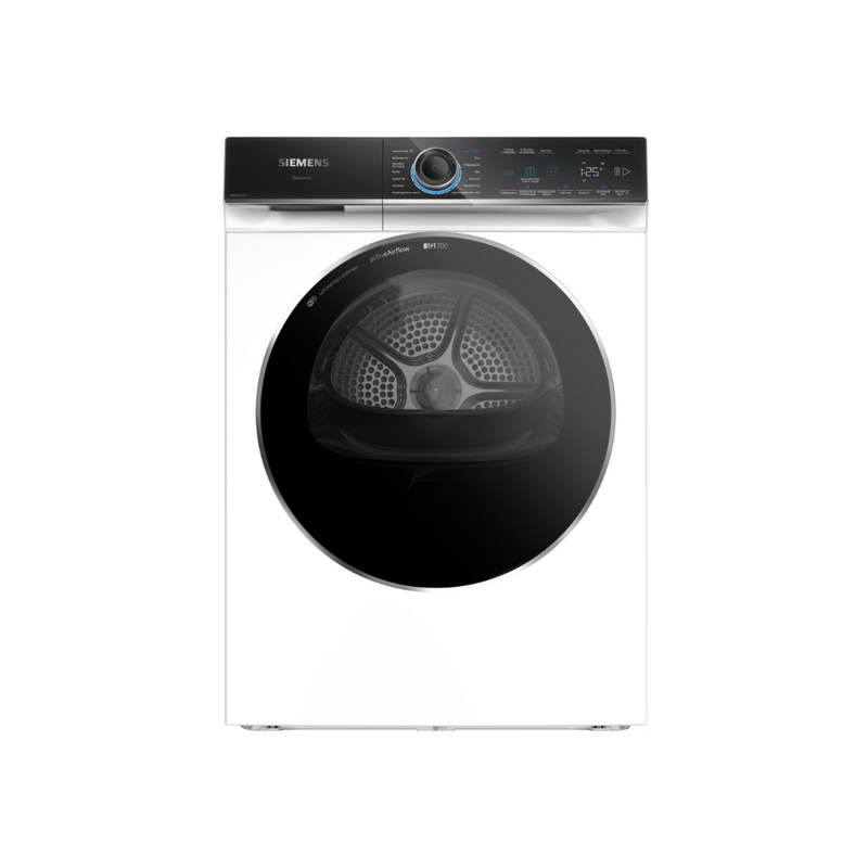 Ergänzt wird das Set durch den SIEMENS iQ700 Wärmepumpen-Trockner WR47B2C0CH, der mit einer Trockenkapazität von 9 kg selbst große Wäschemengen effizient bewältigt. Die fortschrittliche Wärmepumpentechnologie trocknet bei niedrigen Temperaturen besonders schonend und energieeffizient. Feuchtigkeitssensoren erkennen exakt den optimalen Trocknungsgrad und beenden den Vorgang punktgenau. Das Ergebnis ist perfekt gepflegte Wäsche, angenehm weich, knitterarm und bereit für den nächsten Einsatz – ganz ohne unnötigen Energieverbrauch.