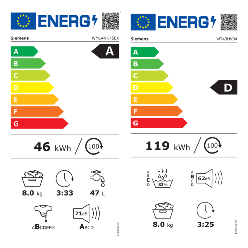 Beide Geräte sind freistehend, als Frontlader ausgeführt und folgen einer zurückhaltenden, zeitlosen Designsprache, die sich problemlos in unterschiedliche Wohn- oder Hauswirtschaftsräume einfügt. Sie wirken funktional, hochwertig und langlebig – Eigenschaften, die für Siemens typisch sind und im Alltag den Unterschied machen.