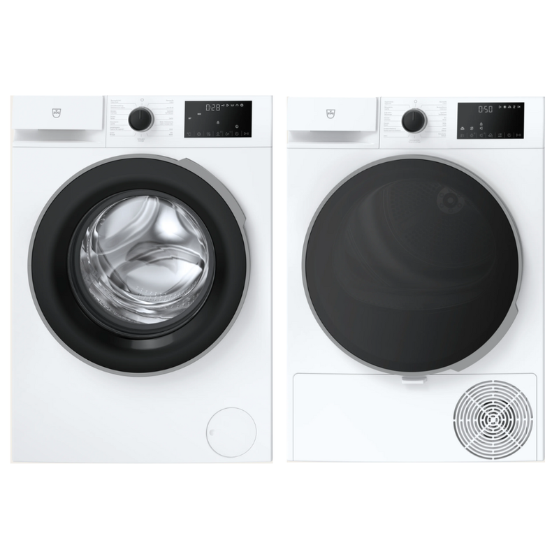 Der Wäschetrockner V400 mit 8 kg Fassungsvermögen und Energieeffizienzklasse C ergänzt das Set perfekt. Er trocknet Wäsche zuverlässig und schonend, ohne unnötig viel Energie zu verbrauchen. Unterschiedliche Programme für Baumwolle, Mix oder Feinwäsche sorgen dafür, dass Kleidung, Bettwäsche und empfindliche Textilien gleichmäßig getrocknet werden. Zusätzliche Funktionen wie Restfeuchtigkeitskontrolle und Knitterschutz erleichtern die Handhabung und ermöglichen, dass die Wäsche sofort nach dem Trocknen gebrauchsfertig ist.