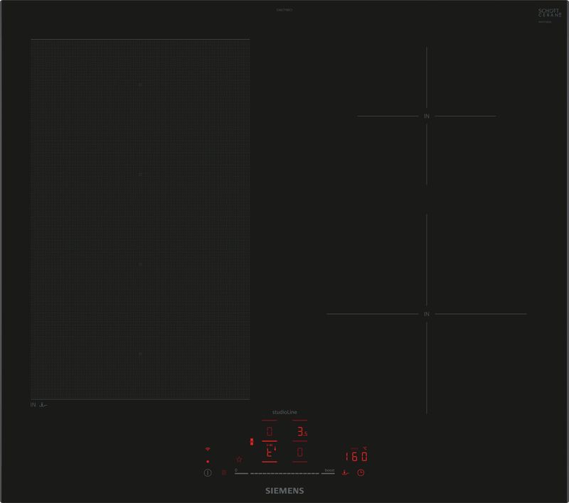 Siemens iQ700, Induktionskochfeld, 60 cm, Schwarz, Mit Rahmen aufliegend, EX677HEC1E, ID EX677HEC1E
