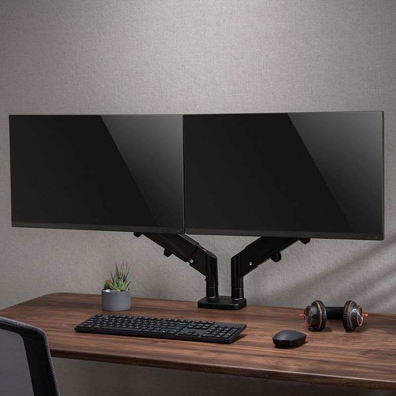 VALUE LCD-Doppelarm, Tischmontage, Platzsparend, Springfeder, 6 Gelenke, bis 2x 9 kg